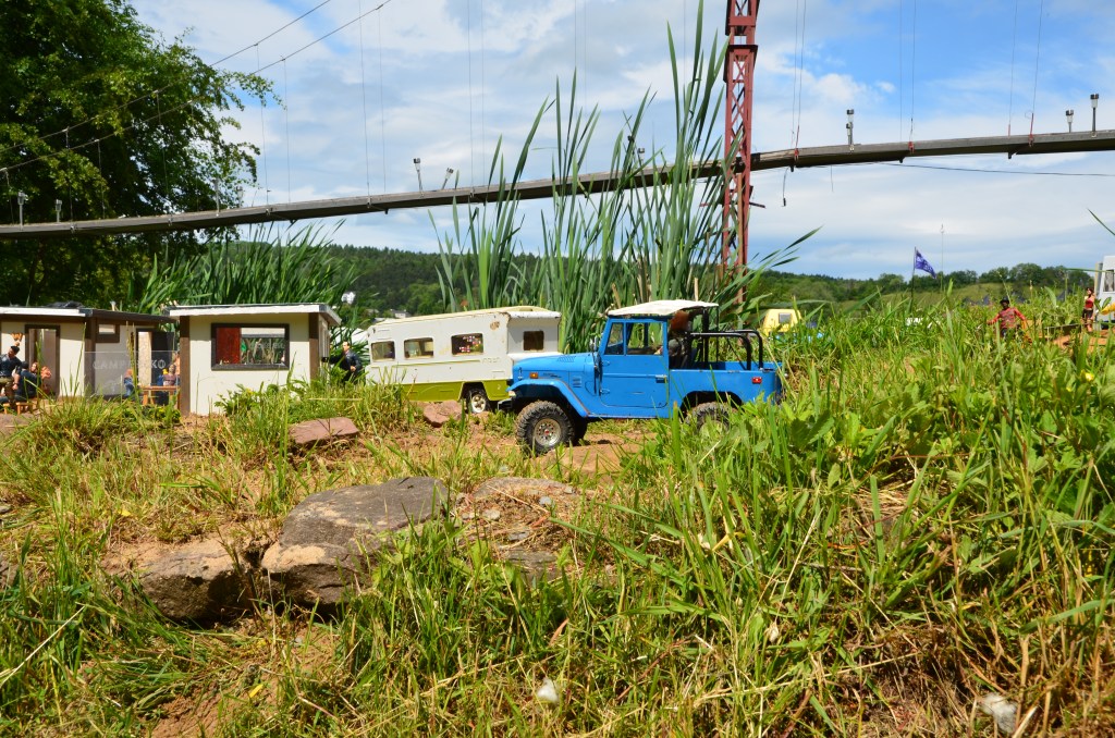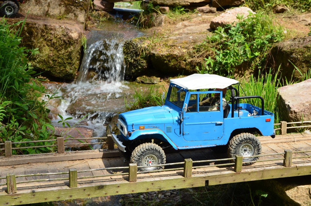 In der Realität bisher so. Noch nicht endgültig angeschlossen sind die Rücklichter in der Stoßstange. Hierfür gibt es noch magnetische Kontaktpunkte, um beim Absetzen der Karosserie nicht immer auch einen Stecker abziehen zu müssen. Das offen liegende Kabelbündel wird hieran noch angelötet, sobald das Teil eingetroffen ist. Auch hier gibt es noch eine Abdeckung, damit keine Kabel von Ästen und Steinen herausgezogen werden können.