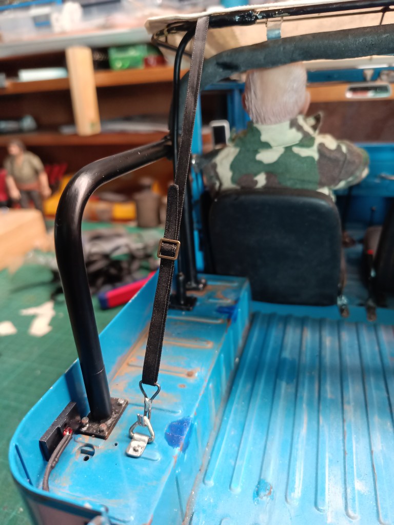 Zwei weitere Spanngurte wurden unter dem Dach befestigt, die nach hinten auf die Radkästen das Dach faltenfrei unter Spannung setzen.