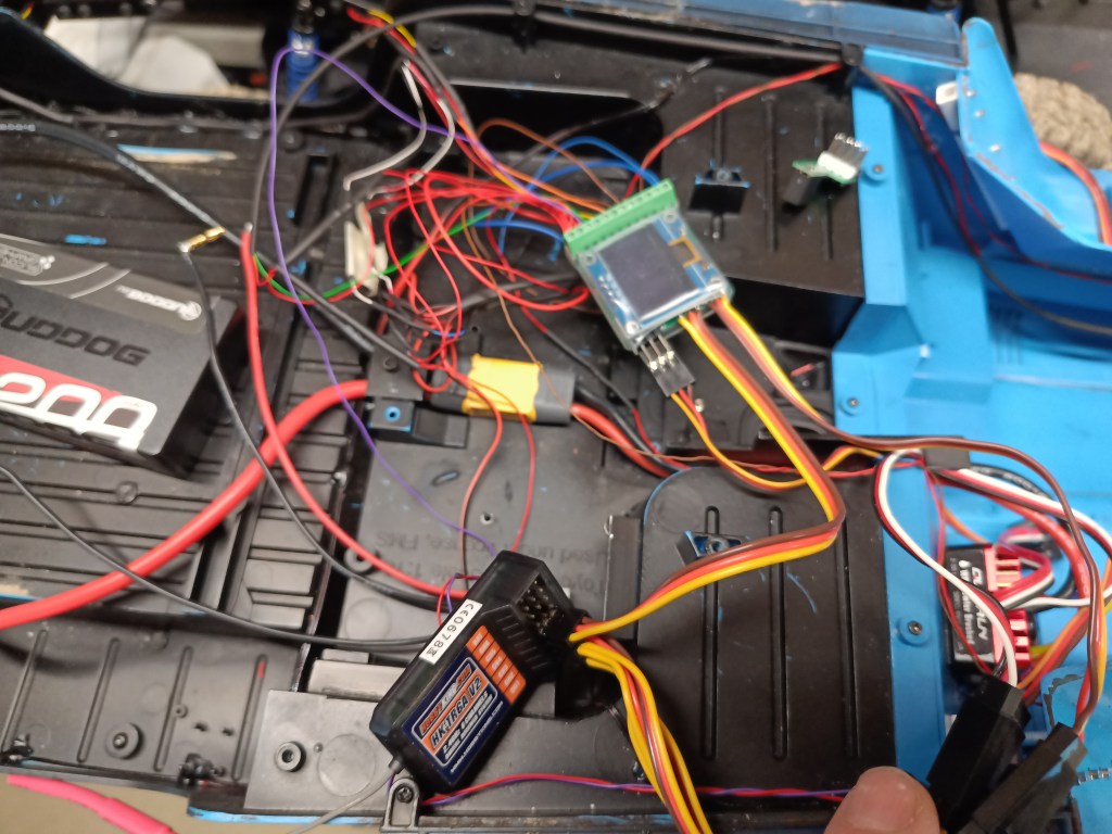 Seit dem letzten Beitrag ist am Toyota nicht viel gebaut worden. Das wenige war aber ziemlich anstrengend und auch ein wenig nervenaufreibend. Alle Vorzeichen standen auf Teilnahme beim SuperScale 2025. Die komplette Lichtanlage und die finale Fertigstellung der Sonnendachbefestigung auf dem Rahmen und am Fahrzeug standen noch aus. Ein Forumskollege hat mir dazu sein neues Lichtmodul RCuniSwitch LC1 parametriert. Meine Aufgabe bestand lediglich darin die Kabel mit den LEDs zu verlöten und dort am richtigen Ausgang anzuschließen. Ich hatte mich für die Ausführung mit Schraubleiste entschlossen, wie im Bild zu sehen ist. Zu Löten gab es hier nämlich an anderen Stellen reichlich.