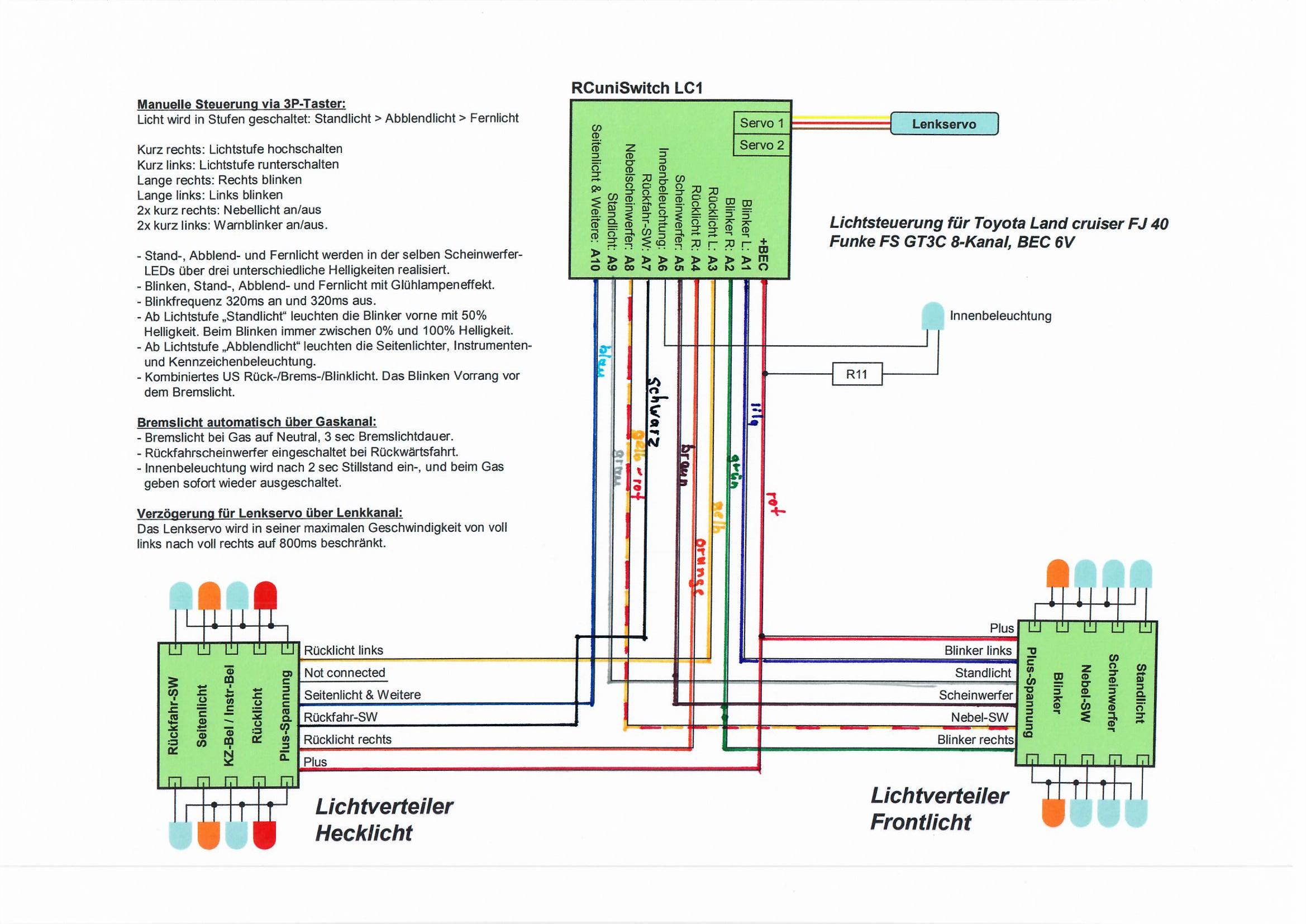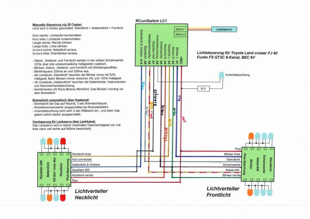 Schematisch sieht die Verkabelung aktuell so aus. Die Innenbeleuchtung wird bis auf Weiteres nicht angeschlossen.