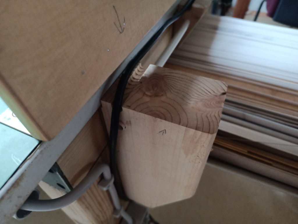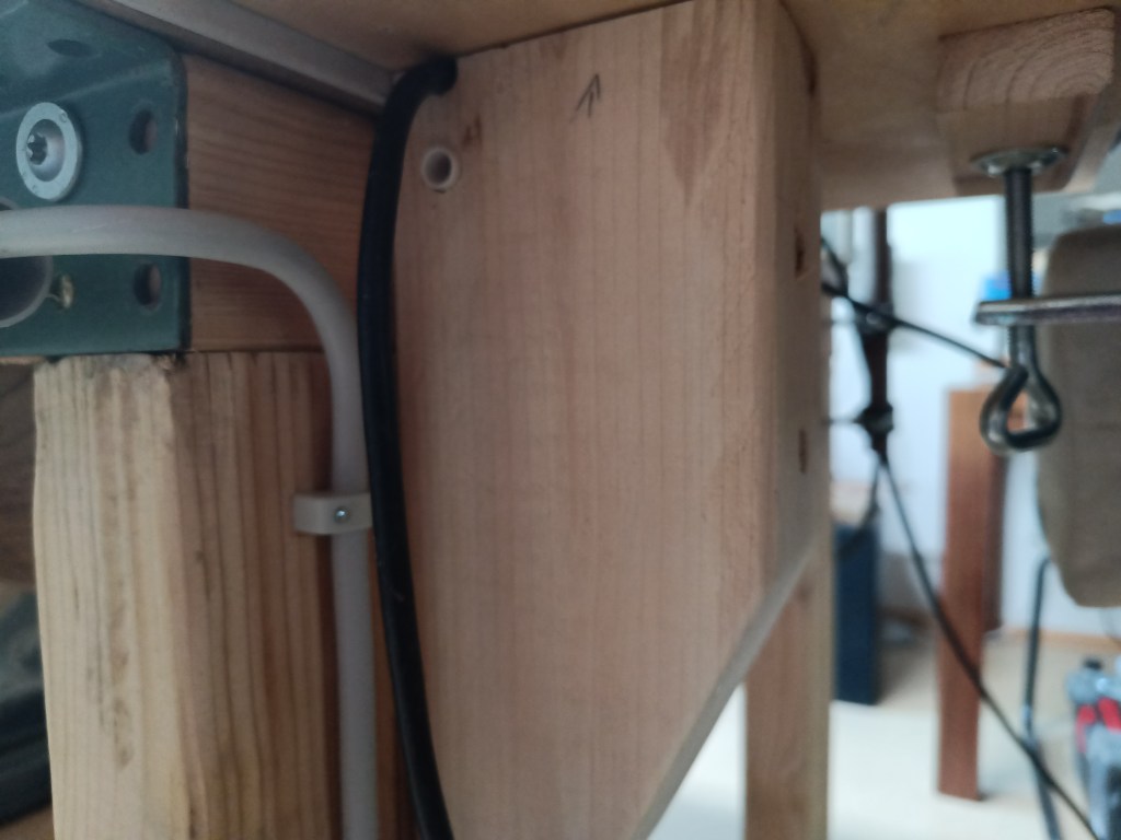 The jigsaw cable was routed in grooves in the additional supports so that it does not hang in the pull-out area of the shelf or the vacuum cleaner. The two supports absorb the tensile and compressive forces from the hinges so as not to overload them for safety reasons.