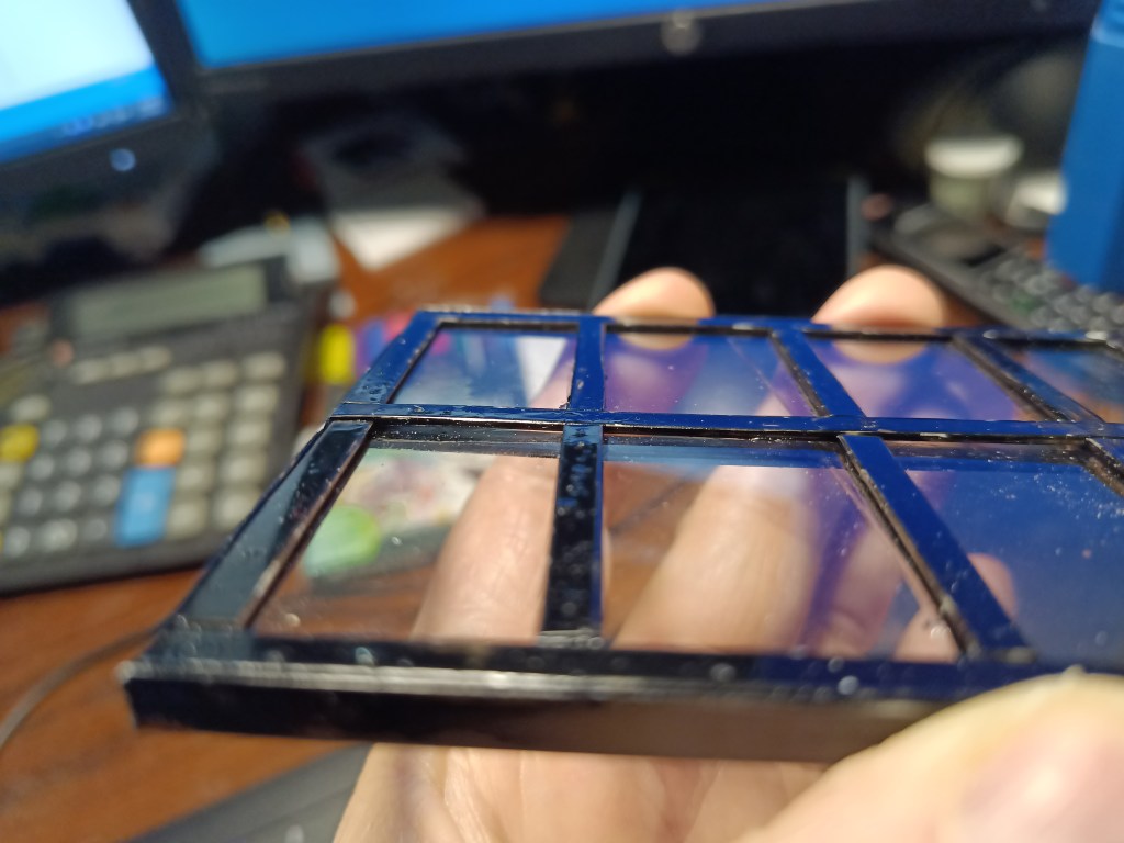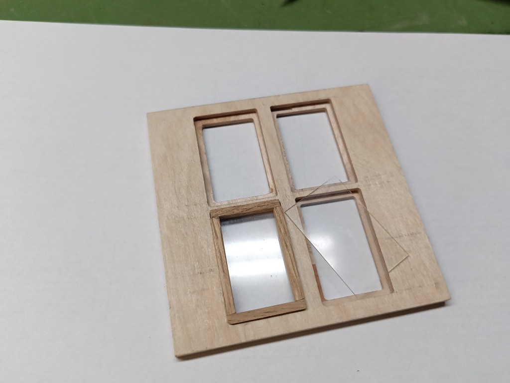The glass slides, which were simply inserted, were secured in the cutouts with wooden strips. A little painstaking work…