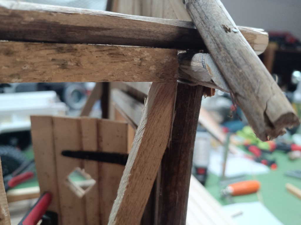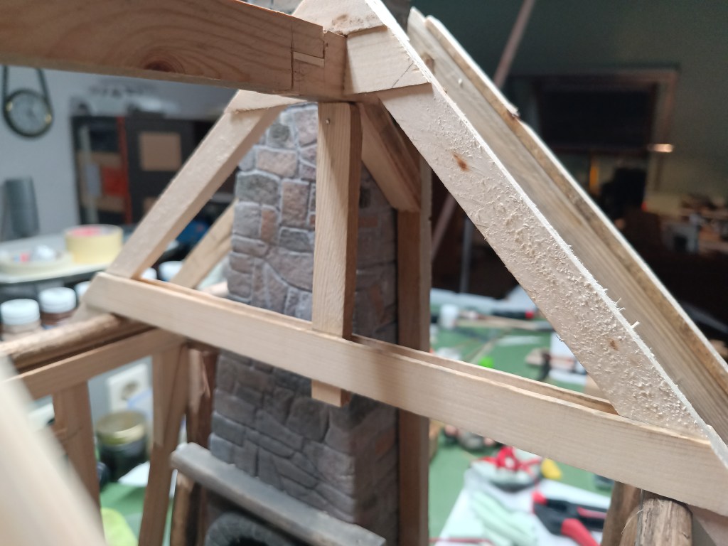 Only the left side wall is still missing to complete the framework. The roof also needed some reinforcements, which I will describe in the current post. My enthusiasm for building is currently beyond words. So I will simply continue with the work on my construction site.