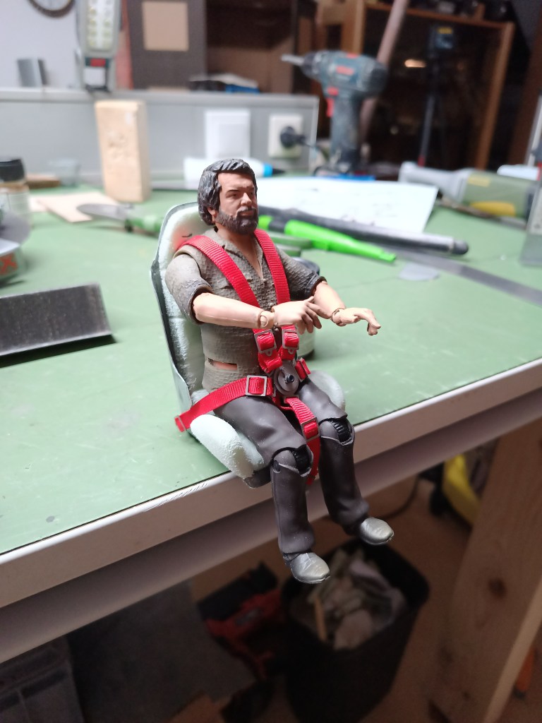 Gekaufte Sitze und fertige Figuren passen selten zusammen. Daher war hier ohnehin ein Eigenbau-Sitz geplant. Im Internet fand ich eine schöne Vorlage, die ich im Faktor 1,5 vergrößerte.