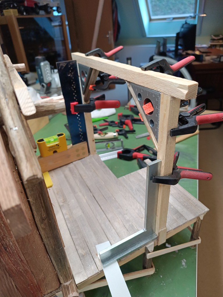 Nachdem die vordere Tragkonstruktion auf die spätere Höhe angepasst war…
