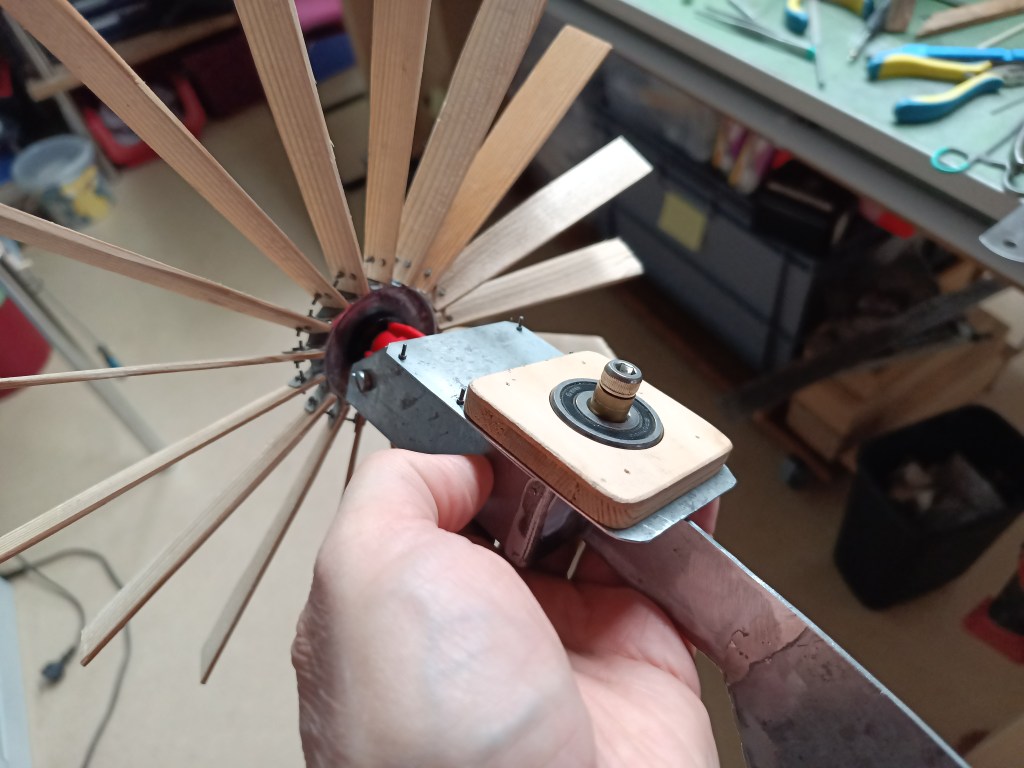 The base of the pivot bearing was also modified again. The 11/5 mm bearing initially used was replaced by a larger bearing measuring 30/10 mm. This allows the bearing to rotate more freely in the wind. The smaller bearing was under too much tension and impeded the rotational movement.