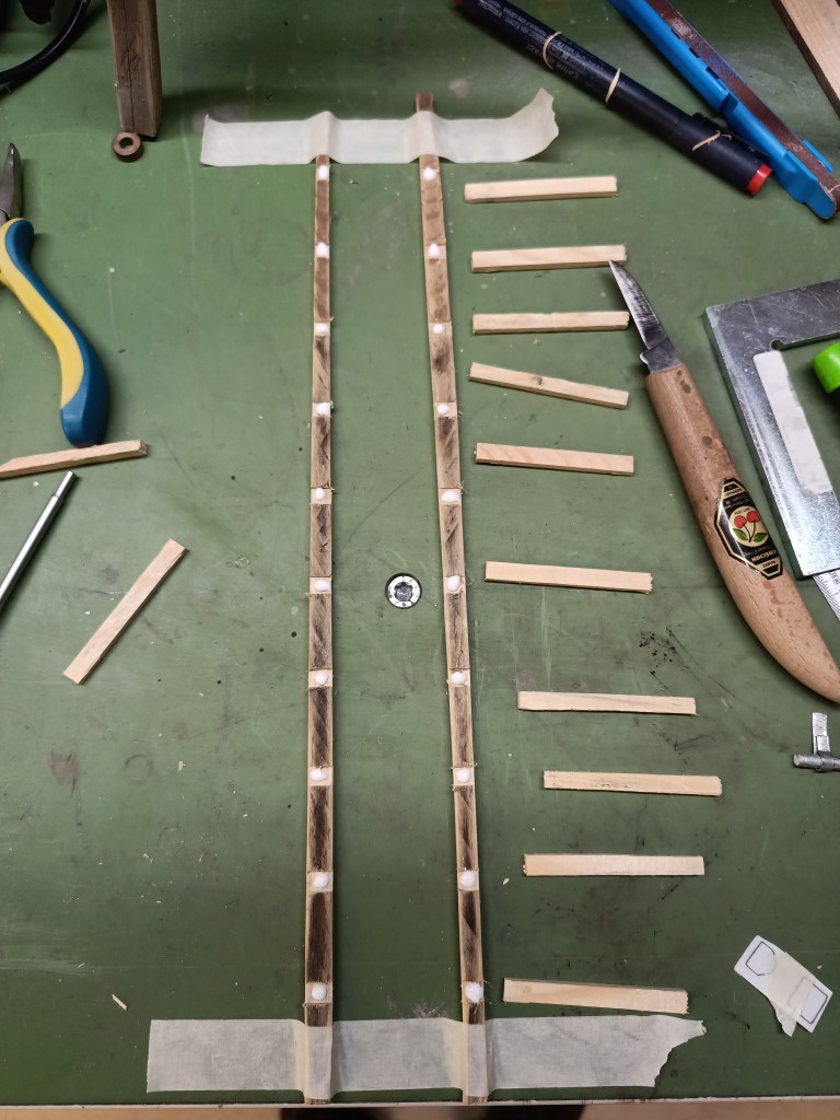 Instead of a ladder, I decided at short notice to build a staircase at this point. Milled pockets and a few steps…