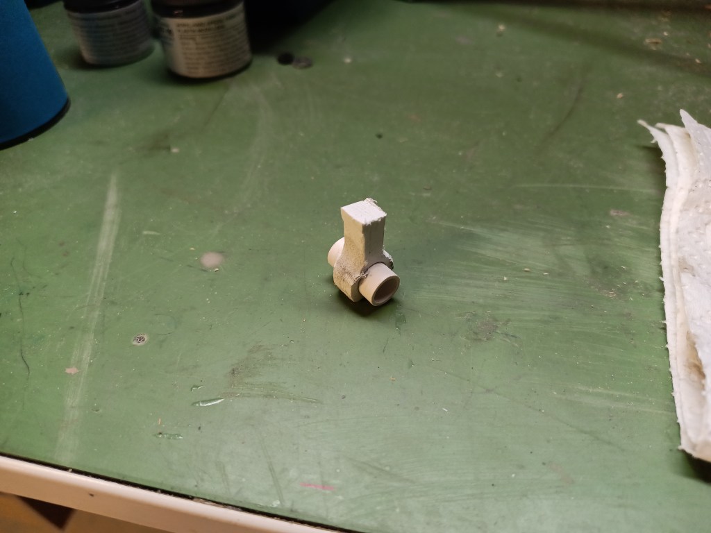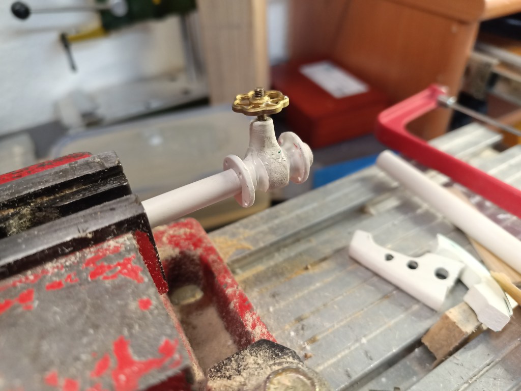 It already looks really real. The turned collar of the sealing surface was represented by a glued-on, drilled, and rounded plastic plate. Now all that’s left is to sand the contours…😏