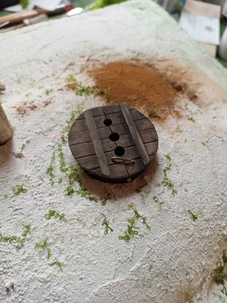 Eine Brunnenschachtabdeckung hatte ich auch dafür gebaut, wieder aus Eisstäbchen.