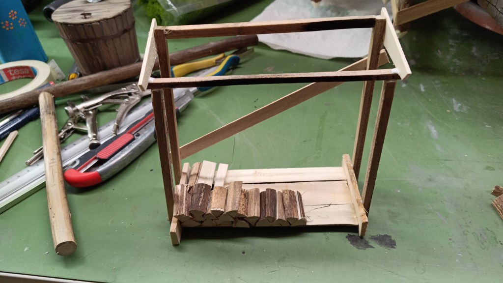 Über mehrere Tage habe ich auch am Holzlager gearbeitet. Der Werdegang…