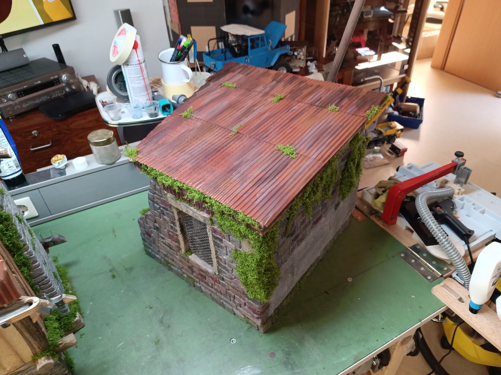 Heute also noch einige Details die bisher noch nicht vorgestellt wurden und zwischendurch entstanden sind. Zunächst aber der weitere Werdegang des Wellblechdaches.